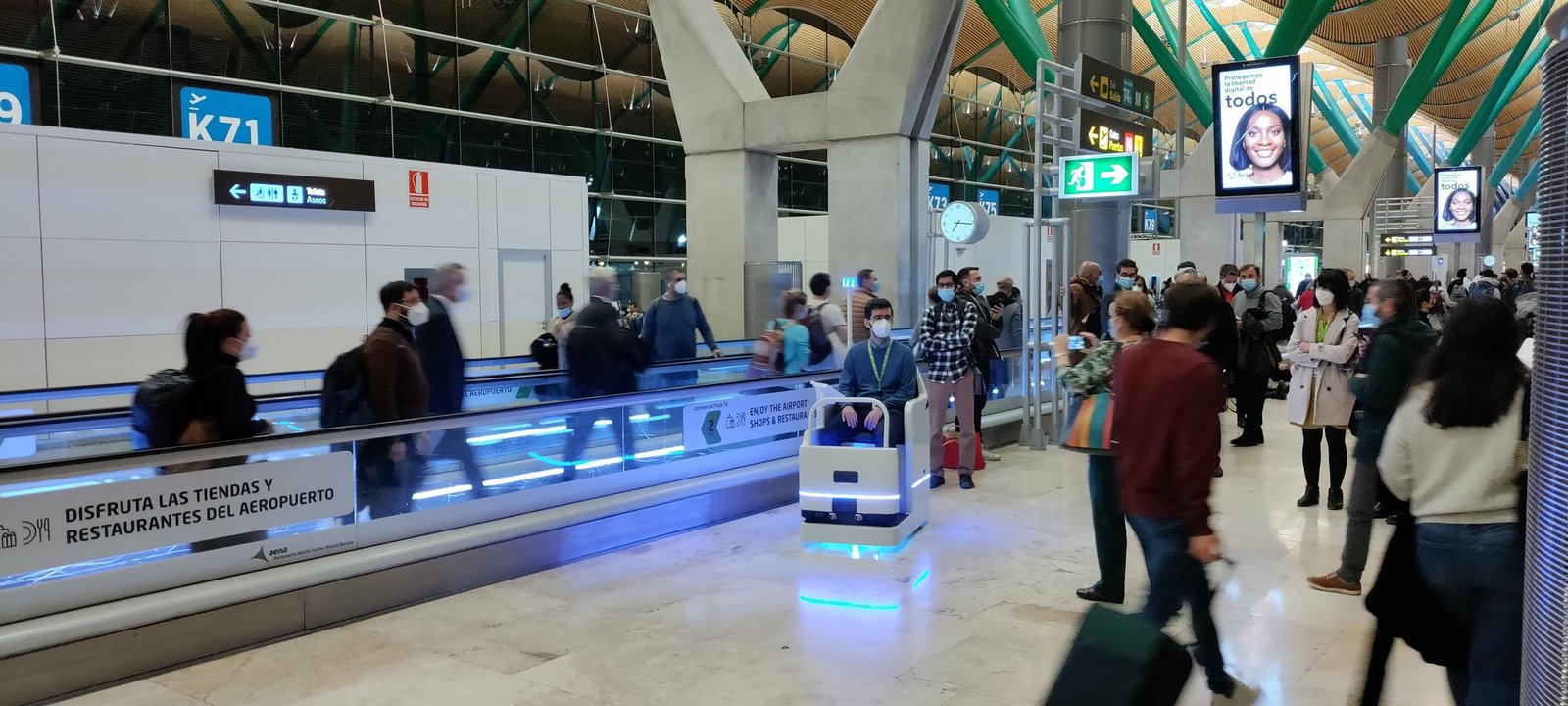 Nei terminal non basta evitare ostacoli. Bisogna convivere con code, cambi di gate, persone ferme, gruppi disordinati, ansia, rumore e tempi stretti. Per questo la parte software pesa tantissimo: la mappa deve aggiornarsi in fretta, la dispatch logic deve restare leggibile allo staff e il mezzo deve comportarsi in modo prevedibile per chi lo usa.